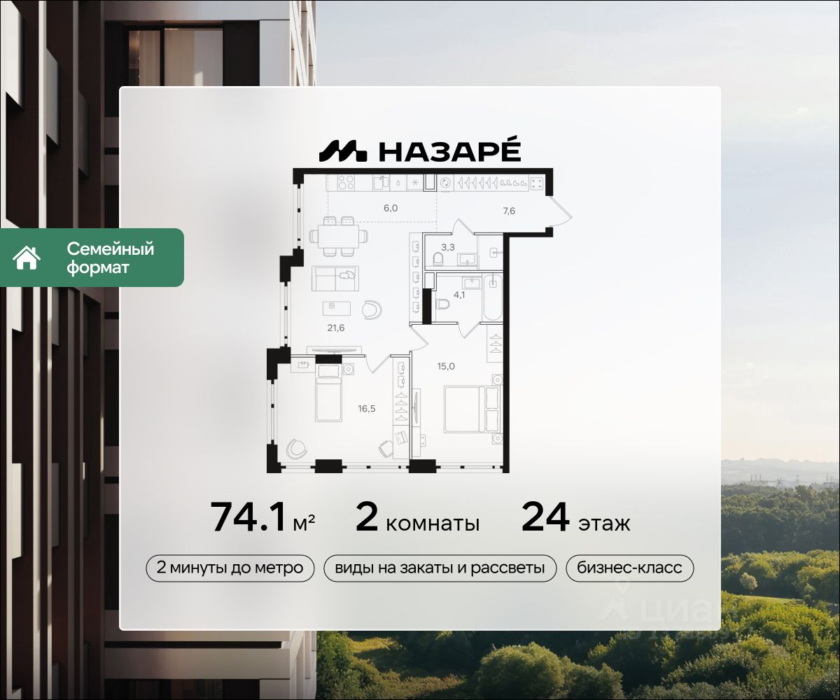 Продается 2-комнатная квартира в ЖК ''НАЗАРЕ''' Общая площадь - 74.10 Тип дома - монолитный Этаж - 24 Год сдачи - 2028 Предлагается квартира площадью 74.10 кв. м в новом современном квартале на востоке Москвы, прямо у станций метро и МЦК ''Бульвар Рокоссовского''. Квартира располагается в корпусе 5 на 24 этаже комплекса бизнес-класса ''НАЗАРЕ'''.