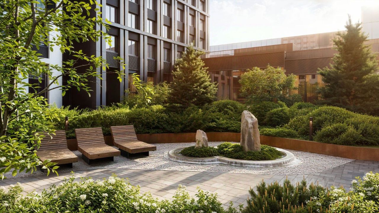 • дизайнерские лобби от бюро ABOVE ARCHITECTURE с панорамными окнами, интерьерами в теплой цветовой гамме и мягкой зоной ожидания располагаются в каждой башне,