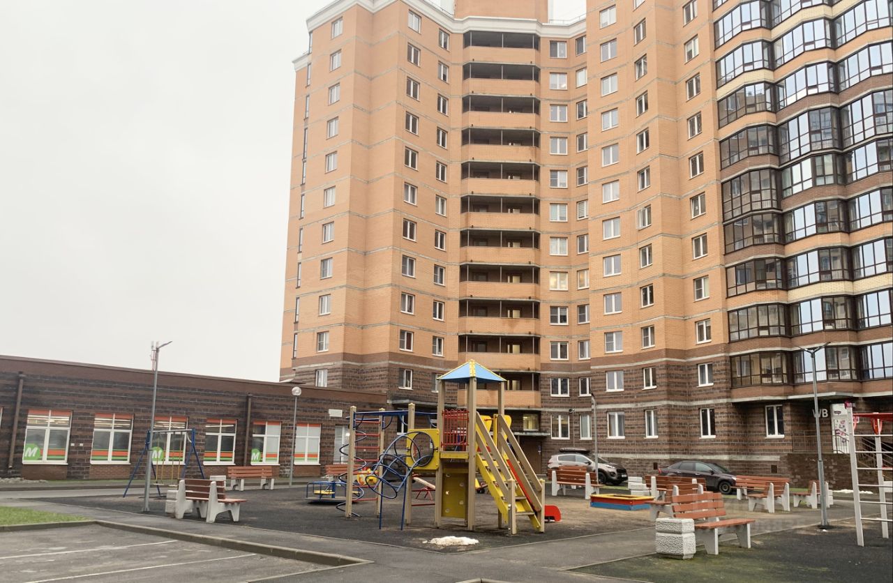 Придомовая территория благоустроена, есть детская и спортивная площадки, рядом с домом универсам, остановка общественного транспорта, через дорогу гипермаркет Лента.