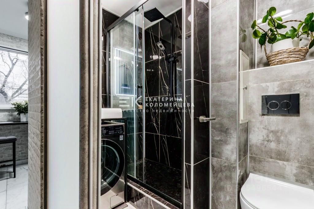 — Удобное зонирование, в просторном коридоре есть встроенный шкаф. Две изолированные комнаты 11.8 м² и 17.8 м² идеально подойдут для спальни, детской или гостевой комнаты. — Функциональная зона с барной стойкой и современной техникой (плита, хороший холодильник, посудомоечная машина). В ванной комнате есть стиральная машина. — В большой комнате остаётся кожаный диван.