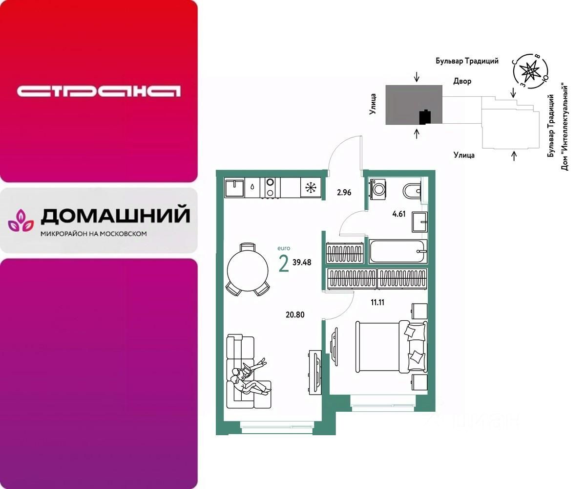 Продается 2комнатная квартира на 2 этаже от застройщика Страна Девелопмент. Площадь квартиры 39,48 кв. м.