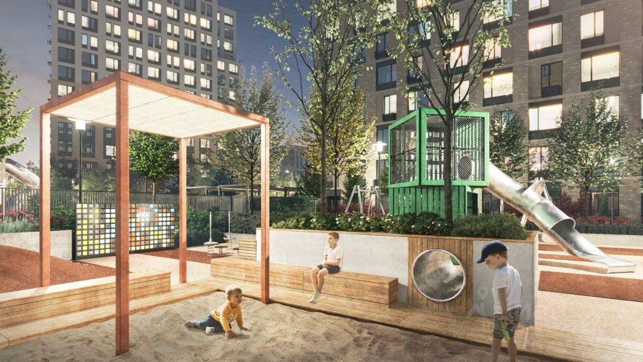У каждого дома обустроен приватный двор с зонами для активного и спокойного отдыха. В активной зоне детские разновозрастные площадки с горками, песочницами и качелями, воркаут-зоны. В спокойной — скамейки, мини-амфитеатры, закрытые перголы. Уютной атмосферу сделает обильное озеленение и освещение ''домашними'' торшерами.