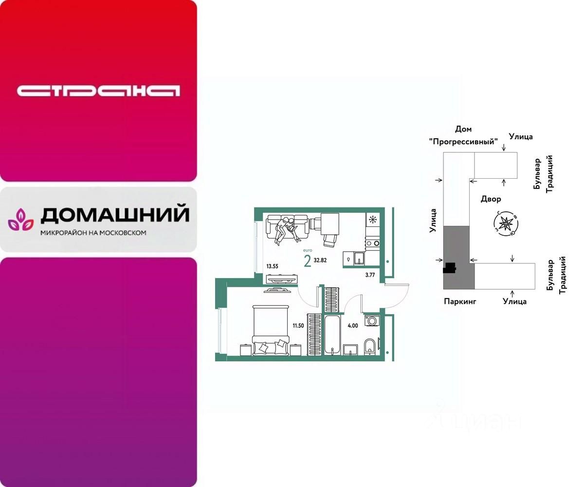 Продается 2комнатная квартира на 8 этаже от застройщика Страна Девелопмент. Площадь квартиры 32,82 кв. м.