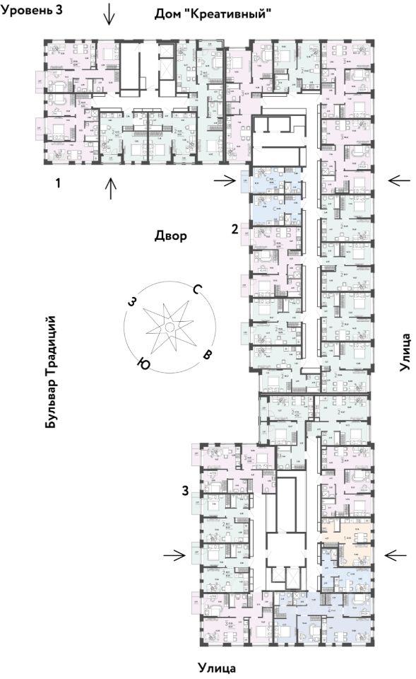 ПРЕИМУЩЕСТВА -Школа, зеленый сквер и пешеходный бульвар прямо внутри квартала -Закрытые дворы у каждого дома для активного и спокойного отдыха -Охрана, видеонаблюдение 24/7 и доступ к камерам в мобильном приложении -Сквозные парадные с прозрачными входными группами, колясочными и велосипедными -Паркинг с въездом по считыванию номеров, системой контроля выбросов CO2, тележками для покупок и велопарковкой -Торговая галерея на первом этаже дома