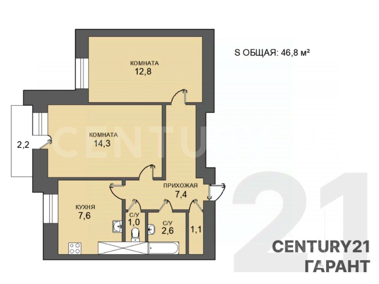 О квартире: Квартира расположена на 7 этаже 9 -этажного дома, общей площадью 46,8 м2.. Светлая солнечная теплая квартира с комфортной планировкой. Изолированные комнаты 14.3 м2 и 12,8 м2, просторная прихожая, эргономичная кухня 7,6 м2, кладовая, готовая под использование в качестве гардеробной, раздельный санузел, балкон. Комфорт дополняют высота потолков 2,8м метра. Вся мебель остается новому владельцу.