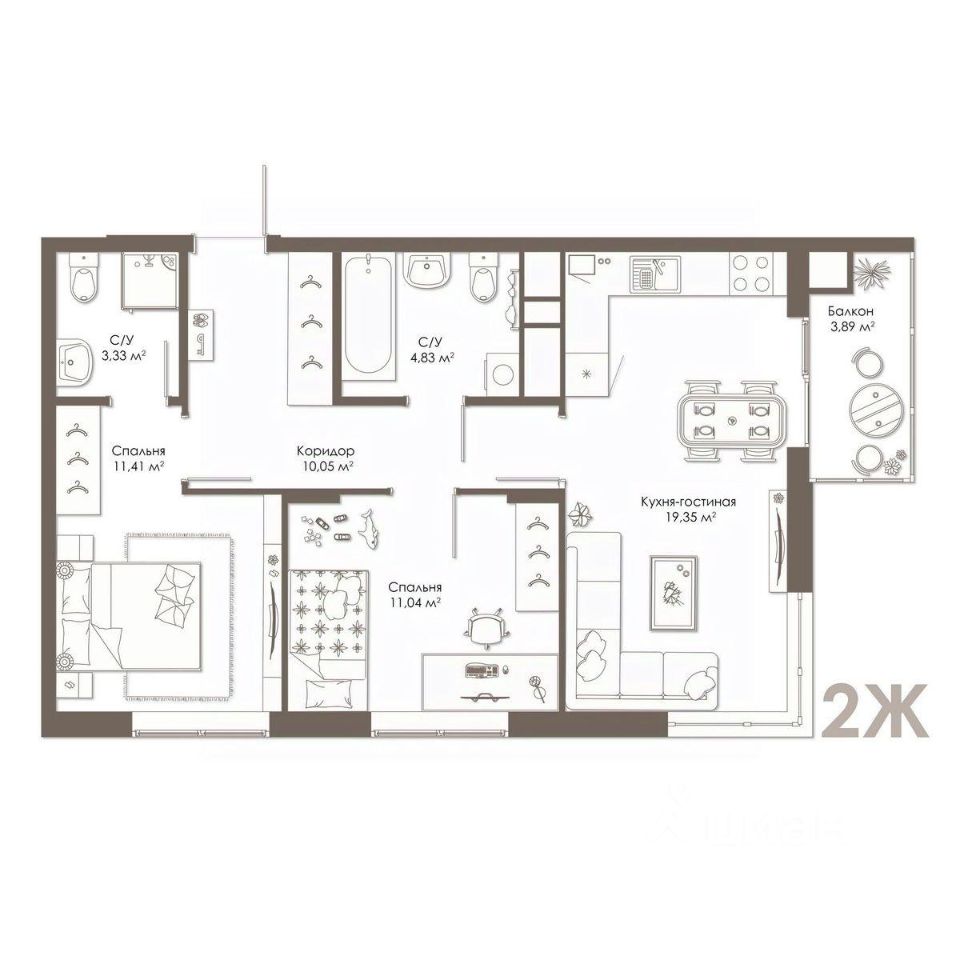 2-комнатная квартира в новом доме комфорт-класса в семейную ипотеку под 4,6%.