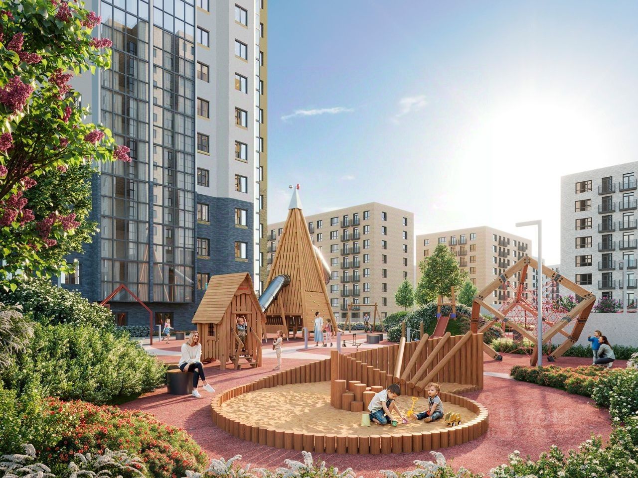 Жилые дома образуют квартал, оборудованный детскими и спортивными площадками.
