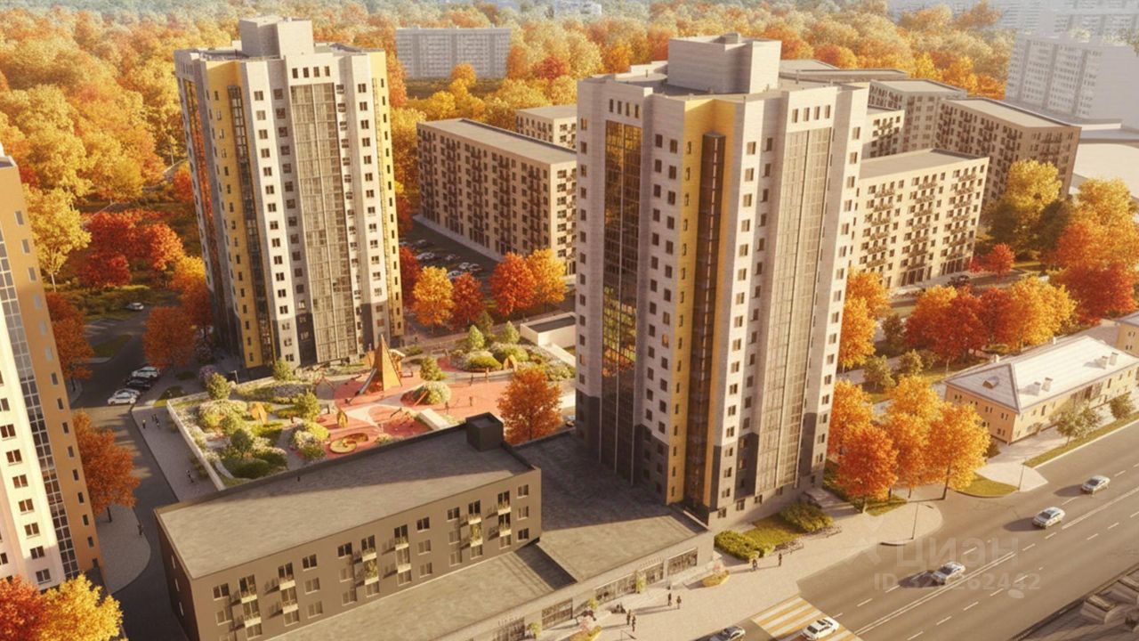 Жилые дома образуют квартал, оборудованный детскими и спортивными площадками.