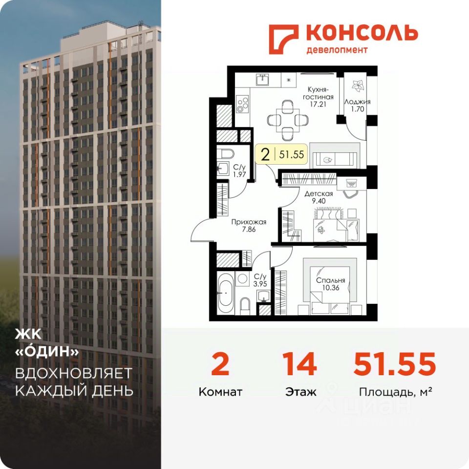 Продается двухкомнатная квартира 147 без отделки в ЖК ''ОДИН'' от застройщика | Чистовая отделка | Семейная ипотека 3,5%