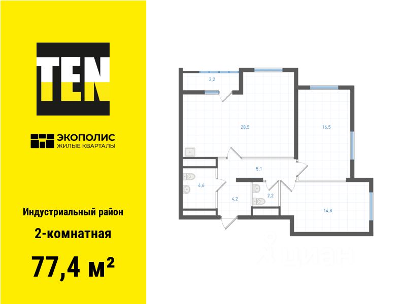 Квартира в ЖК ''Экополис'' в Индустриальном районе от застройщика TEN девелопмент! Ключи в 3 квартале 2026 года.