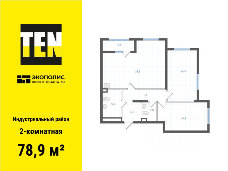Квартира в ЖК ''Экополис'' в Индустриальном районе от застройщика TEN девелопмент! Ключи в 3 квартале 2026 года.