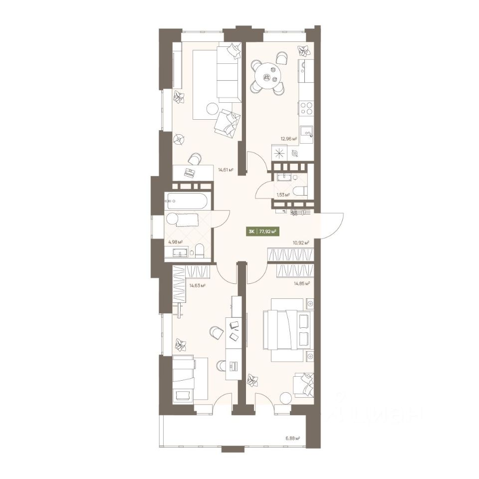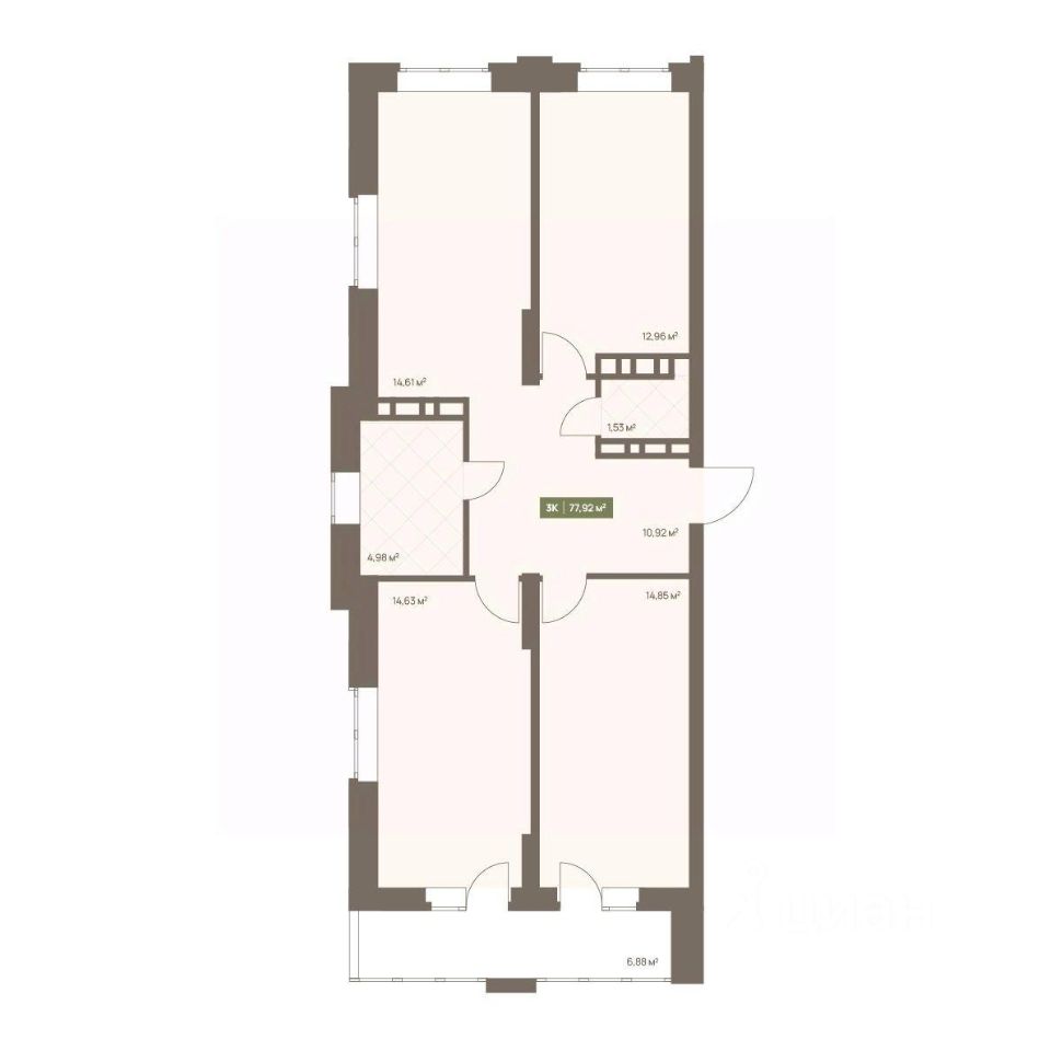 В жилом комплексе NOVA на Московском в продаже квартира N 35 площадью 77.92 кв.м. Кирпич от фасадов до межкомнатных стен, высокие потолки, большие окна и остекленная лоджия. Квартира сдается в отделке white box. 17-этажный дом, с последних этажей которого открываются панорамные виды на город. Подземный паркинг на 74 машиноместа, благоустроенный закрытый парк-двор с ландшафтным озеленением, зонами отдыха, детскими и спортивными площадками. Двор закрыт, без машин. На территории комплекса ведется видеонаблюдение. Рядом Новая набережная — лучшее место в городе для отдыха, занятий спортом и встреч с друзьями.