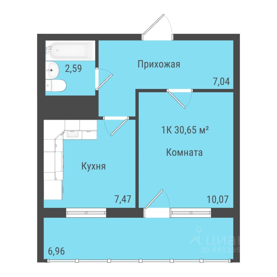 Общая площадь30,71 м2