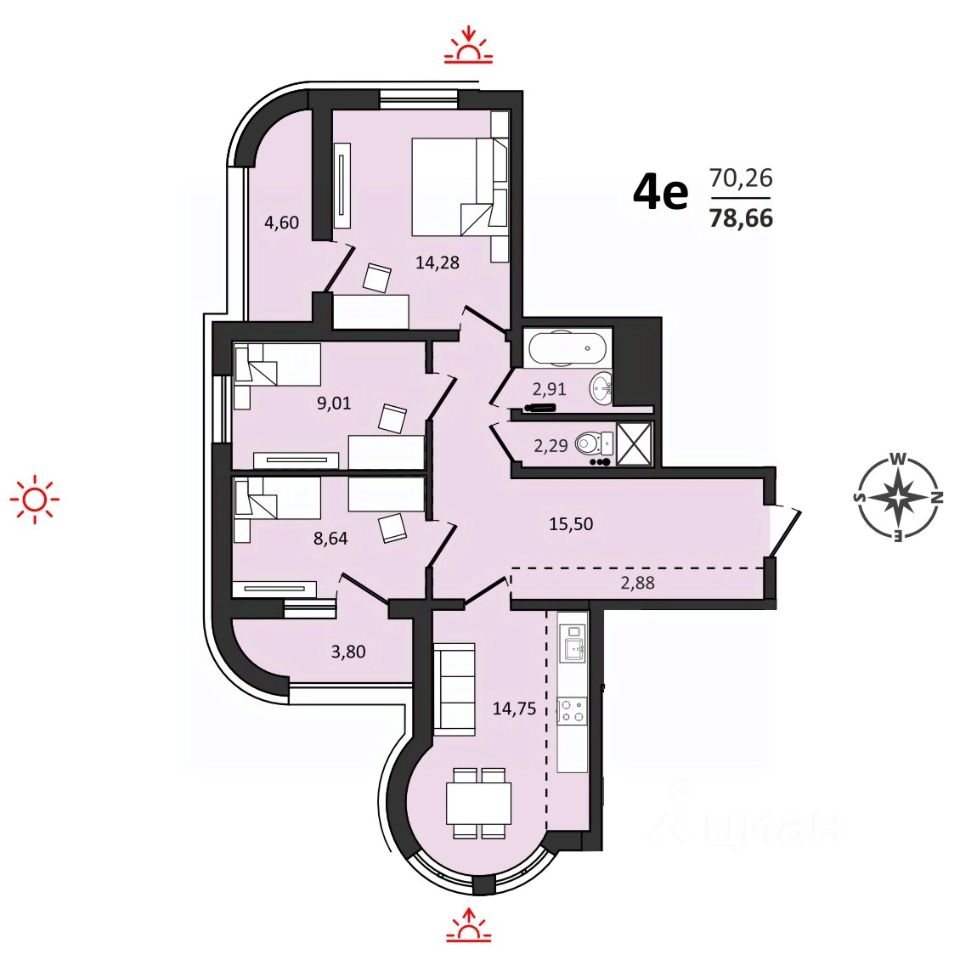 Продаётся 4-комнатная квартира 78,66 м2 от застройщика в жилом комплексе ''Аккорд''.