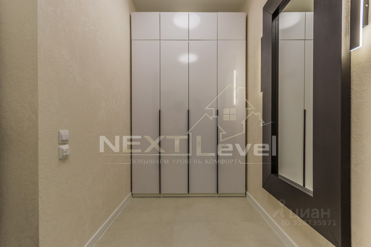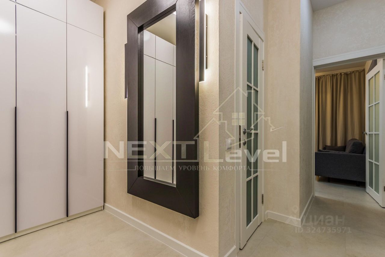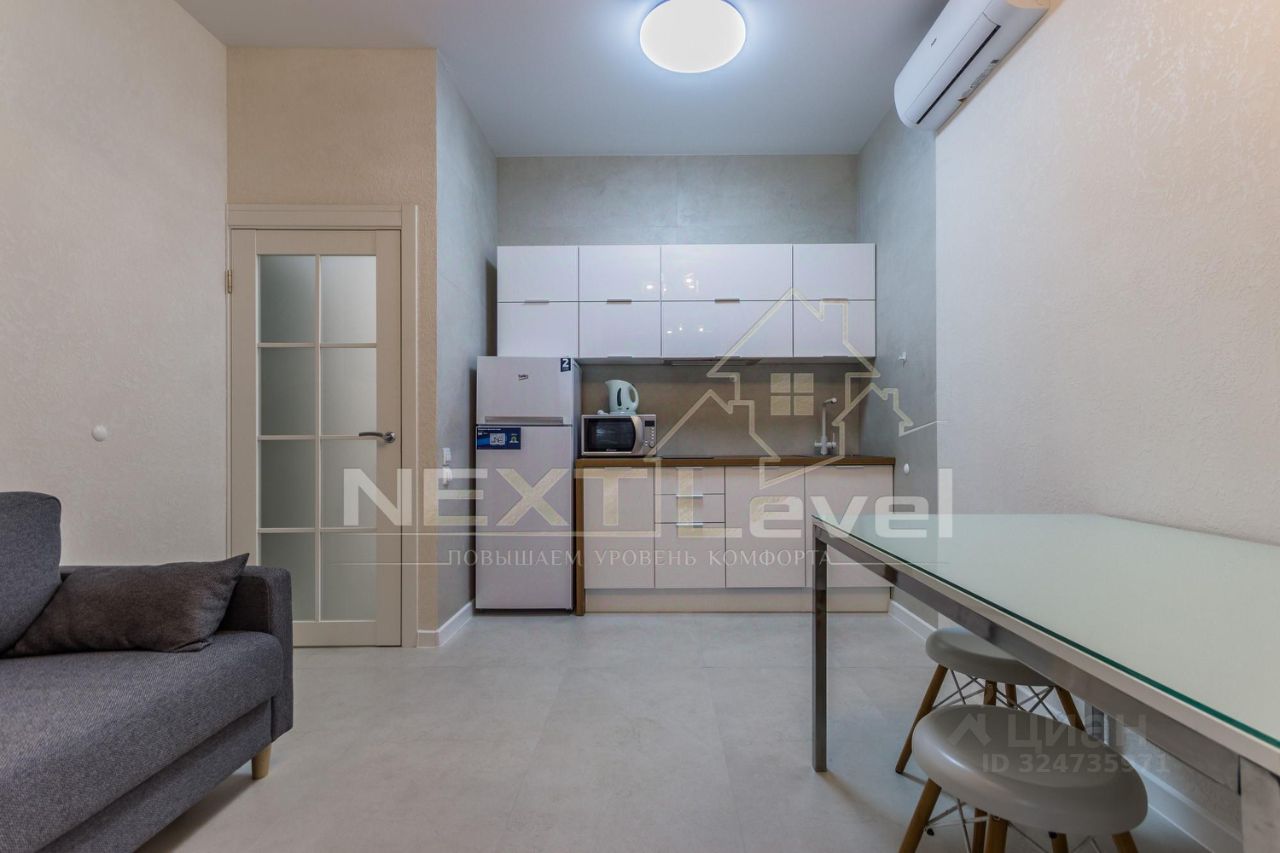 По планировке состоит из спальной комнаты, кухни-гостиной , прихожей с шкафом,совмещённого санузла, гардеробной. Диван в кухни-гостиной раскладывается, очень удобный.