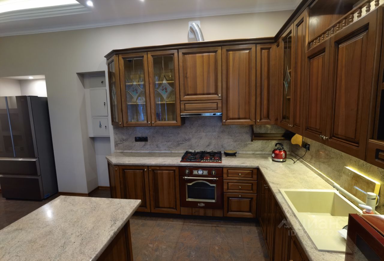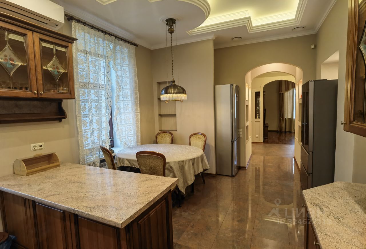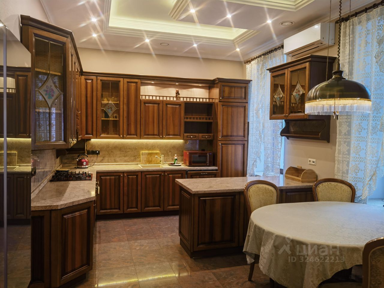 Кухня: 18 кв.м, зонирована. Полный комплект встроенной бытовой техники, включая два холодильника, широкую посудомоечную машину, кофе-машину, газовую плиту.