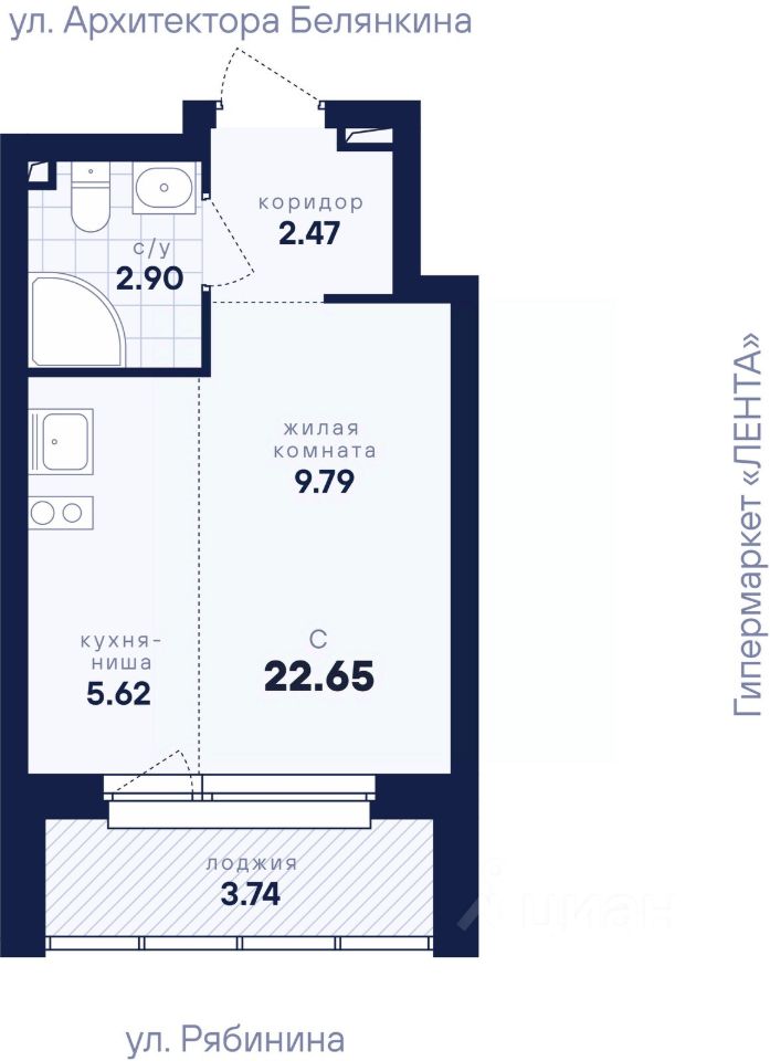 Общая площадь22,65 м2