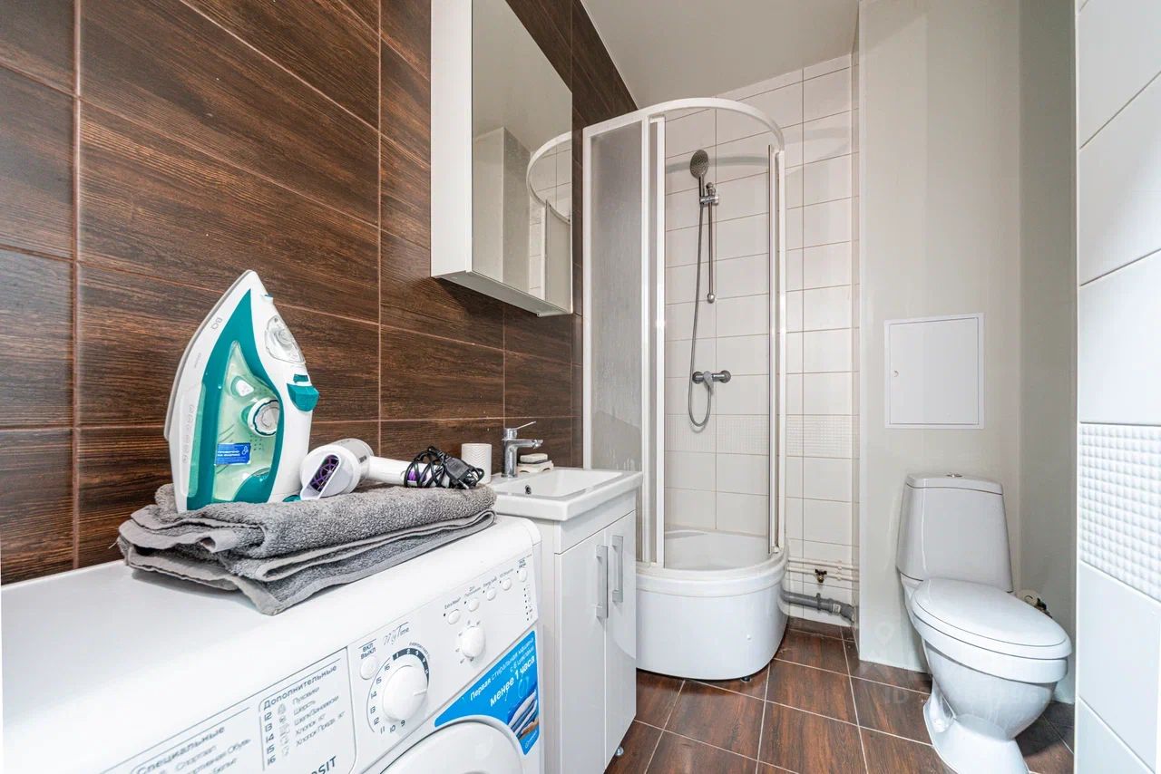 В квартире сделан евроремонт, обеспечивающий комфорт и уют. Кухня полностью оборудована необходимой мебелью и техникой. В комнате также имеется вся нужная мебель для комфортного проживания. В ванной комнате установлена душевая кабина, а также есть стиральная машина.