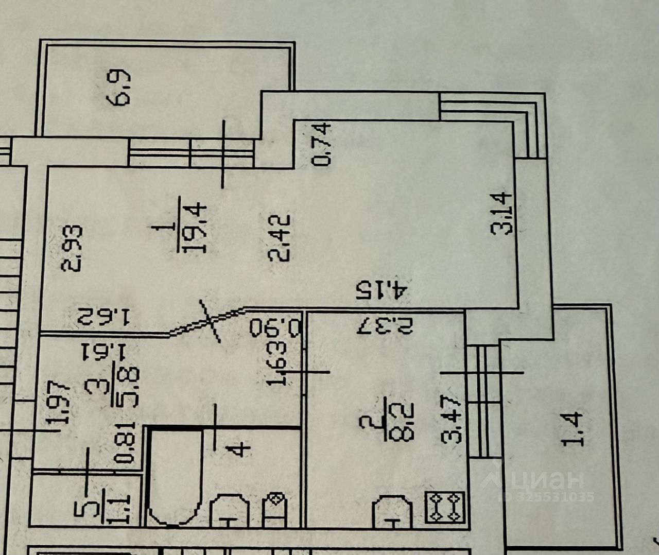 Комната почти 20 кВ метров, с возможностью зонирования.