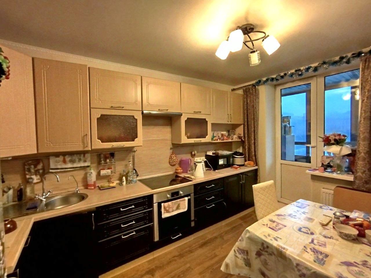Квартира с качественным ремонтом, комната-правильной формы и достойного метраж-19,5кв.м., шикарная вместительная кухня со встроенным гарнитуром и бытовой техникой-12,2кв.м., застекленный полноценный балкон-8 кв.м! (с выходом из кухни), вместительная ванная комната- 3,5 кв.м,. большая удобная прихожая со встроенной гардеробной и местами д/хранения вещей.