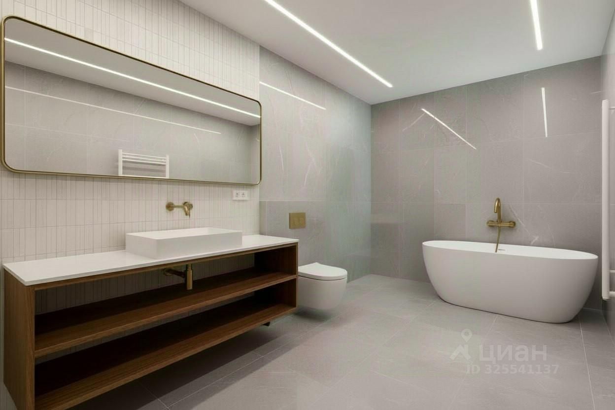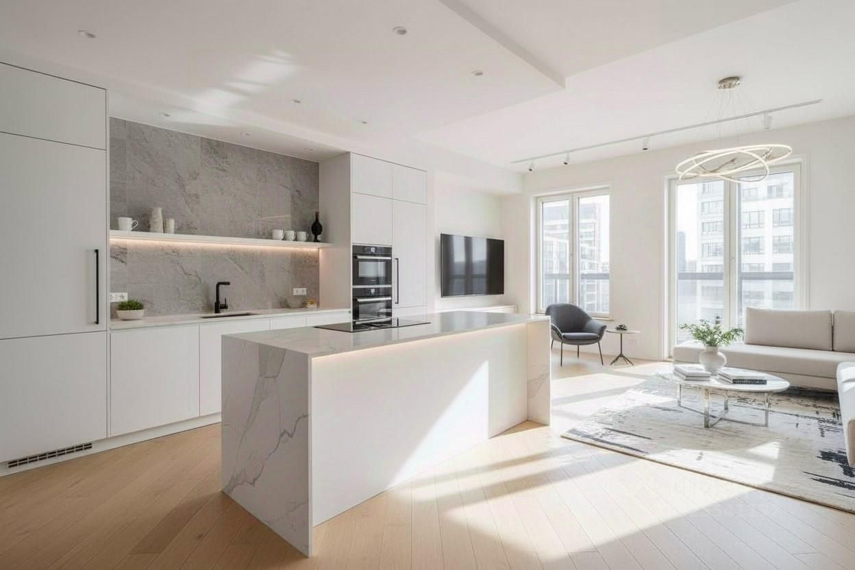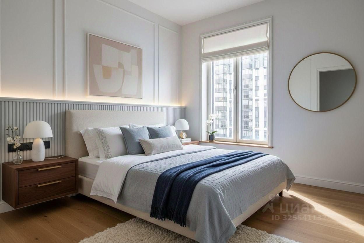 В квартире выполнен дизайнерский ремонт в светлых тонах, создающий атмосферу легкости и уюта. Продуманная планировка включает просторную кухню-гостиную, две изолированные спальни, два санузла и функциональные зоны хранения. Квартира полностью меблирована и оснащена всей необходимой бытовой техникой премиум-класса.