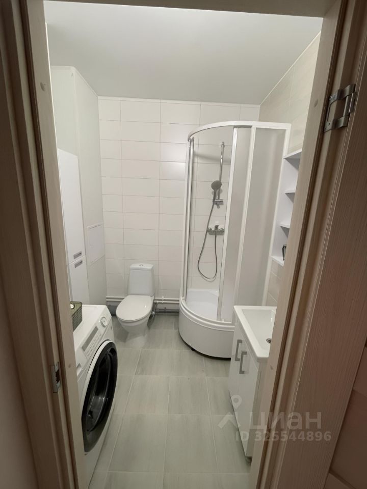 Ванная комната совмещенная, оснащена душевой кабиной и стиральной машиной. Из комнаты выход на застекленный балкон с видом на ухоженный двор.
