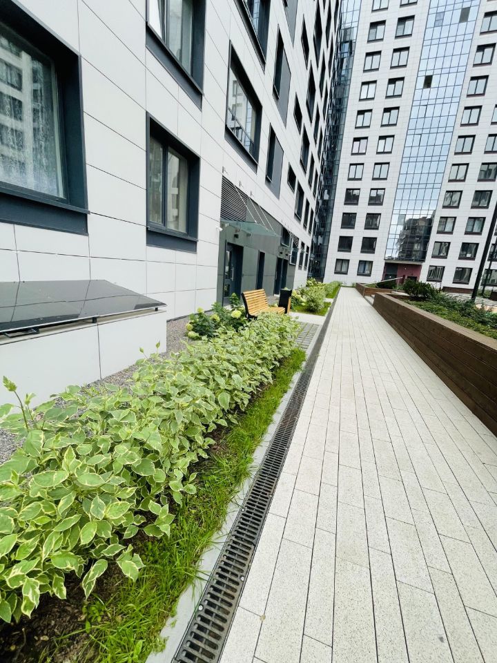 Дом оборудован пассажирским и грузовым лифтами, подземной парковкой за шлагбаумом. Во дворе обустроены детская и спортивная площадки. В квартире запрещено курение, но можно проживать с детьми. Животные не допускаются.
