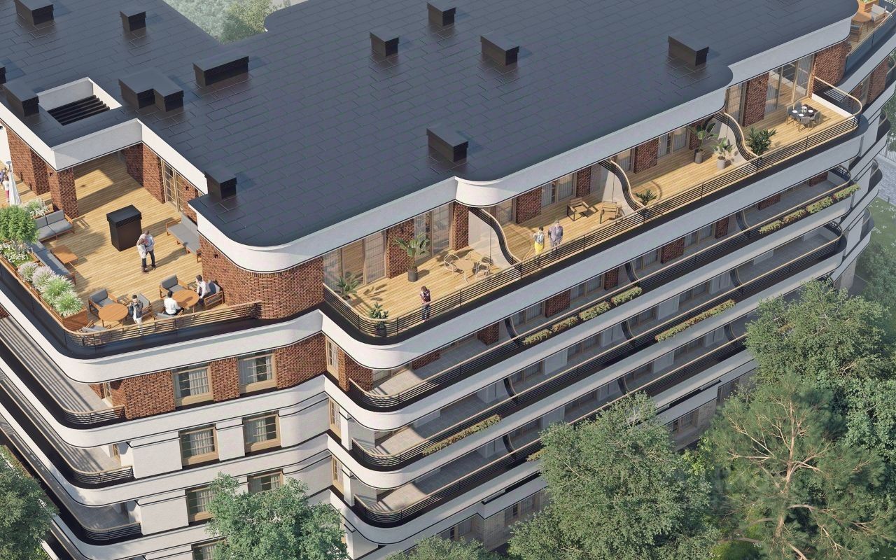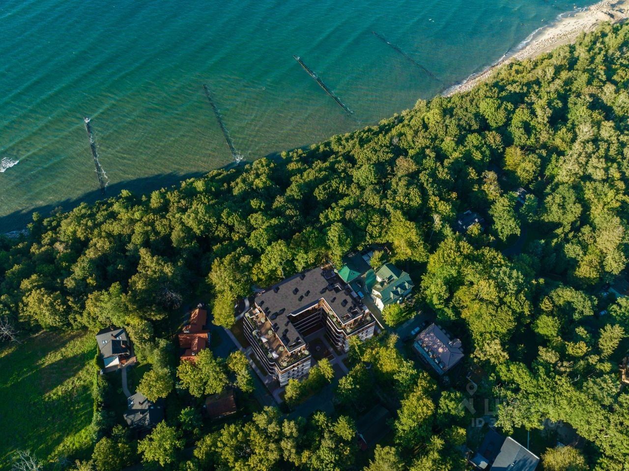 Преимущества: - Фонтан в центре двора. - Эксплуатируемая кровля с видом на Балтийское море. - Пространство для отдыха с лежаками, озеленением, зоной барбекю, открытым кинотеатром. - Индивидуальный дизайн-проект мест общего пользования. - Входные двери высокого класса безопасности. - Кладовые помещения. - В каждом подъезде гостевой туалет с лапомойкой. - Подземный паркинг. - Зона для хранения колясок и велосипедов, с пунктом быстрого обслуживания и подкачки водных принадлежностей. - Зарядная станция для электромобилей. - Двор без машин. - Огороженная территория с системой контроля доступа. - Видеонаблюдение по всей территории. - Уличные дорожки с подогревом. - Проект установки кондиционера в каждой квартире. - Архитектурная подсветка фасадов.