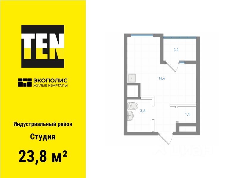 Квартира в ЖК ''Экополис'' в Индустриальном районе от застройщика TEN девелопмент! Ключи в 3 квартале 2026 года.