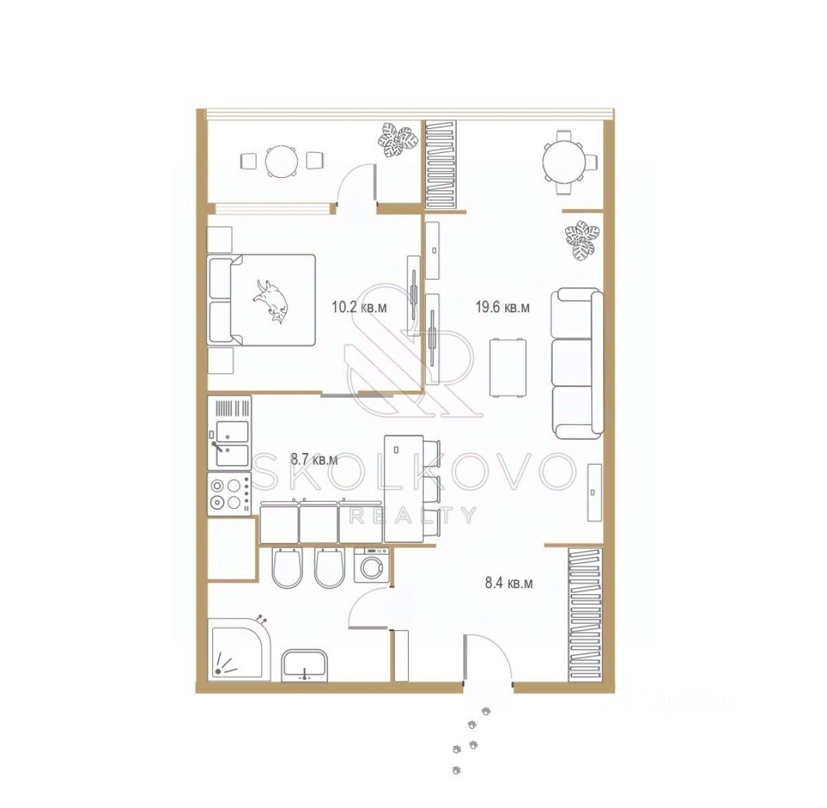 Квартира укомплектована: Душевой кабиной итальянской фирмы GLASS с джакузи и паровой баней, а также унитазом и биде от Villeroy & Boch. Аудиосистемой и камерой видеонаблюдения на входе для вашей безопасности. Приватной террасой с летней мебелью для уютных вечеров на свежем воздухе.