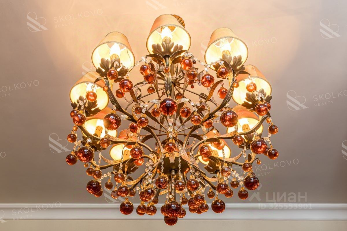Люксовые хрустальные люстры итальянских брендов Pataviumart в гостиных и спальне создают атмосферу роскоши. Дополняют их стильные настольные лампы от Chiantese и бра от Versace в ванной.