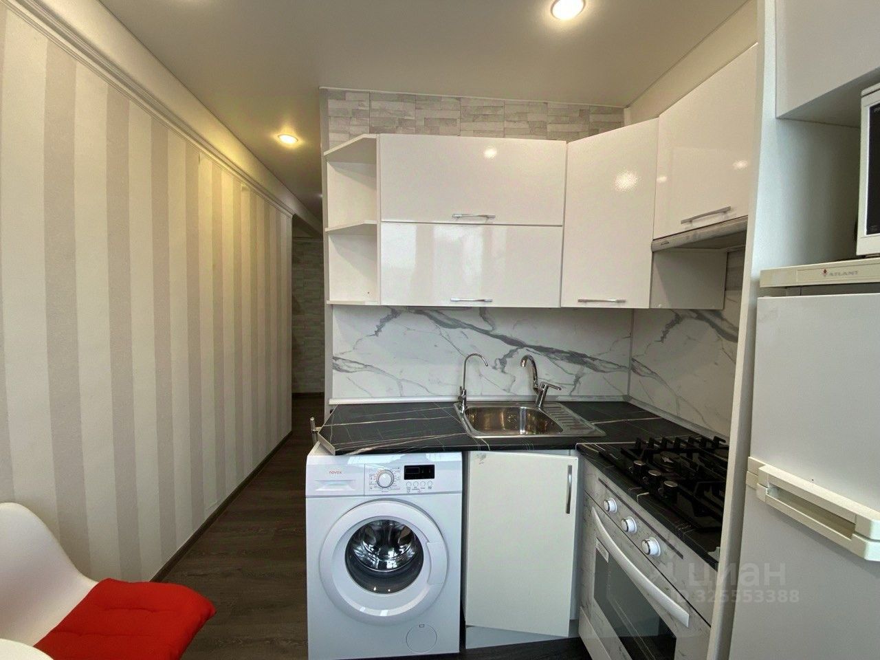 Вся необходимая для проживания мебель и техника в наличии: + холодильник, + варочная панель (газовая), + духовка (электрическая), + микроволновая печь, + стиральная машина, + угловой диван (разбирается), + кровать (матрас нужно будет докупить самостоятельно), + в прихожей большой шкаф купе с зеркалом.