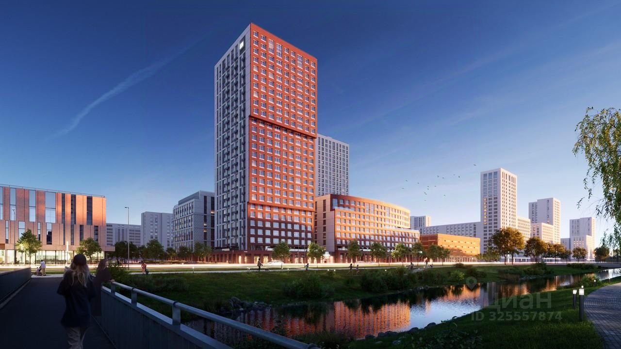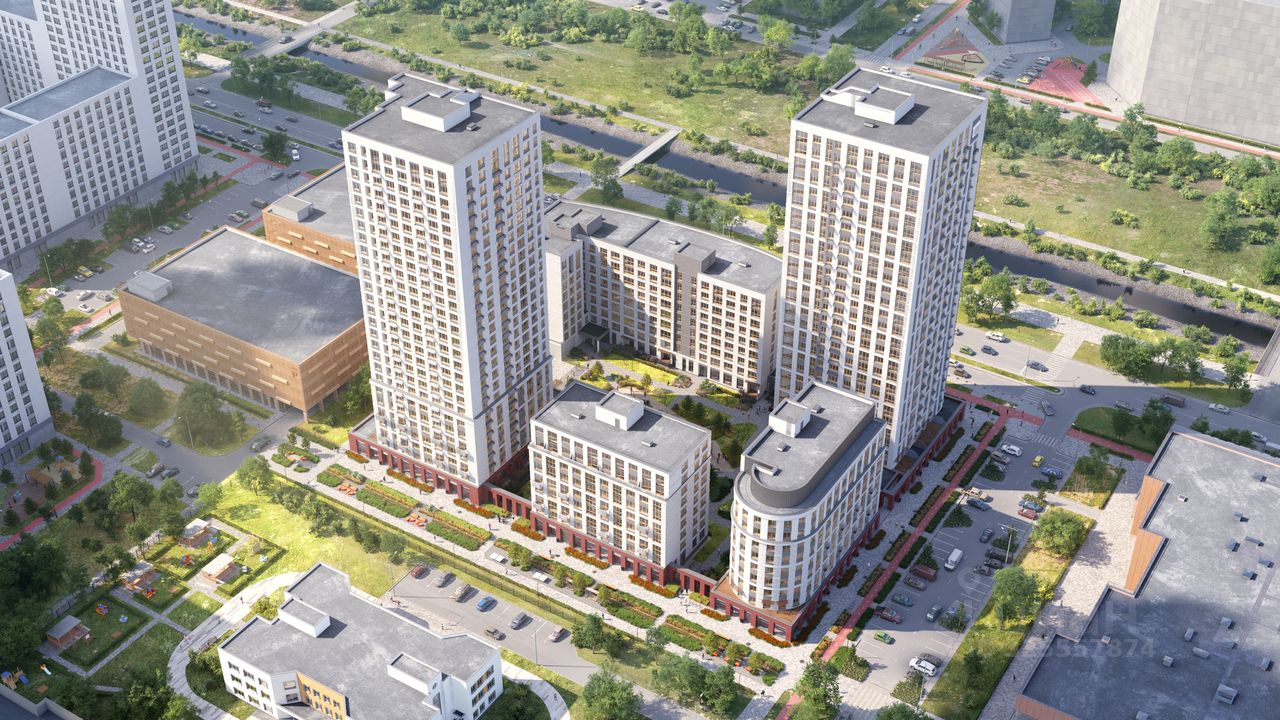 Символические ворота новой очереди Академического — самого молодого и яркого района Екатеринбурга. Лента воды и фасад из красного кирпича напомнят о заводе-крепости, стоявшему ниже по течению реки Патрушихи.