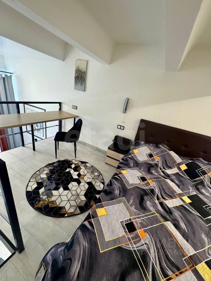 Первый этаж занимает уютная кухня и гостиная, на втором этаже расположена спальня с просторным гардеробом и рабочая зона. Студия продается с качественным ремонтом, и оснащена всей необходимой мебелью и бытовой техникой. Высота потолков 4,3 метра, полноценный второй этаж с высотой потолков в 2,10 метра. Жилая площадь составляет 19 м' по полу первого этажа, а также 13 м2 антресоли.