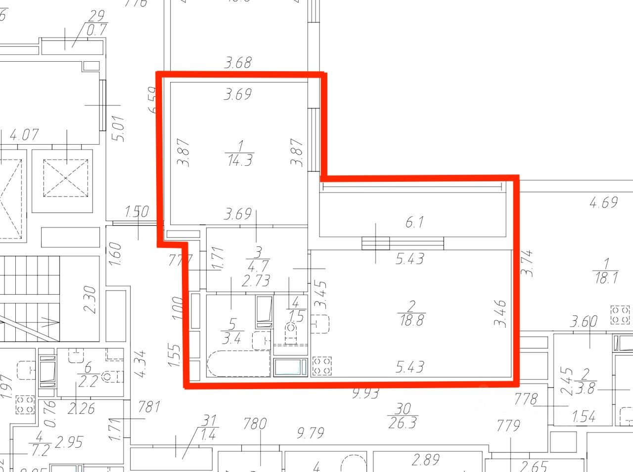 В квартире произведен ремонт от застройщика.