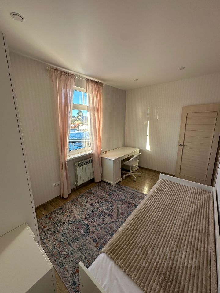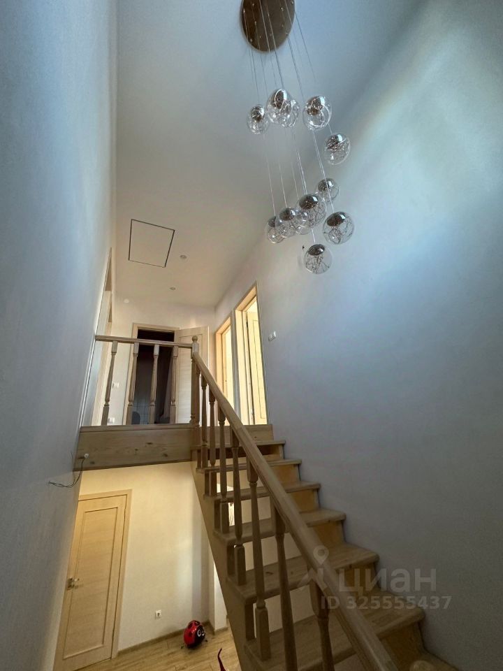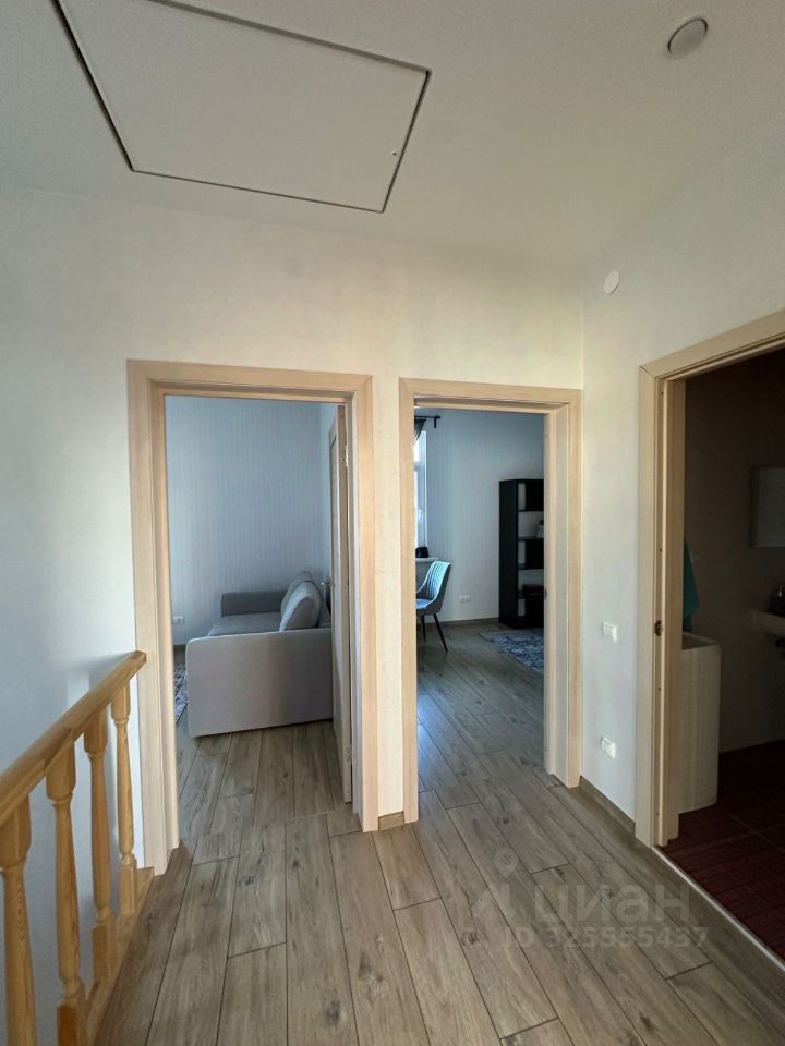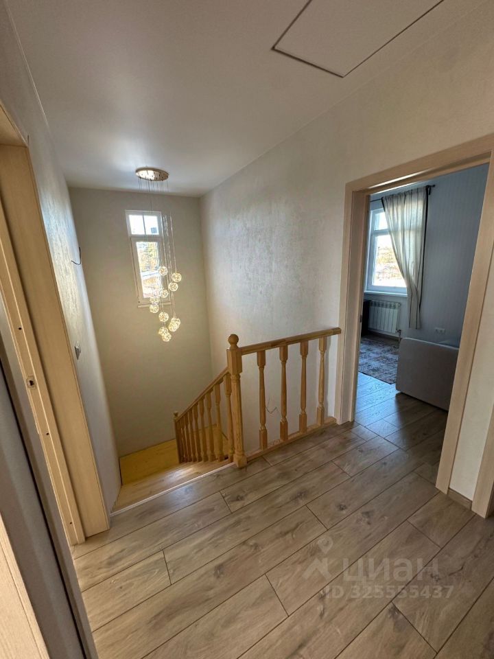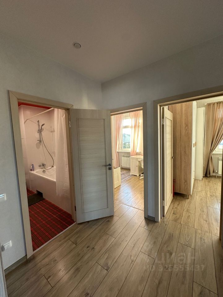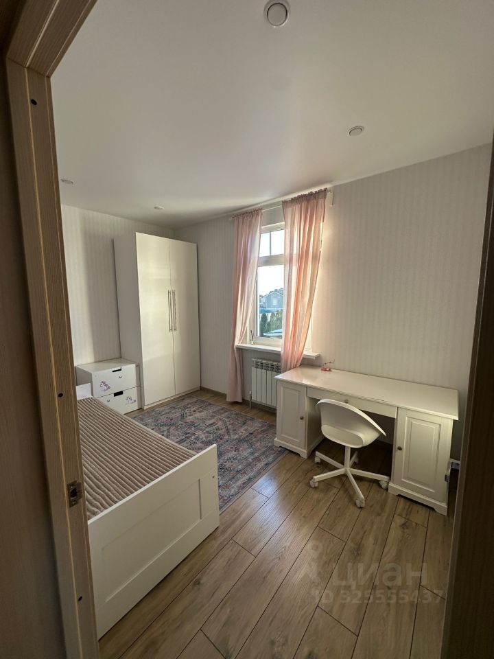 На первом этаже расположена: Кухня -Гостиная 20 кв.м. + одна спальная комната+ один санузел+ гардеробная. На втором этаже: четыре спальные комнаты (смотрите фото) Один санузел (смотрите фото).