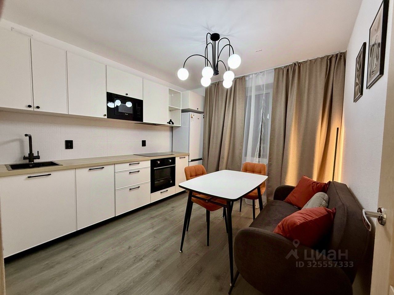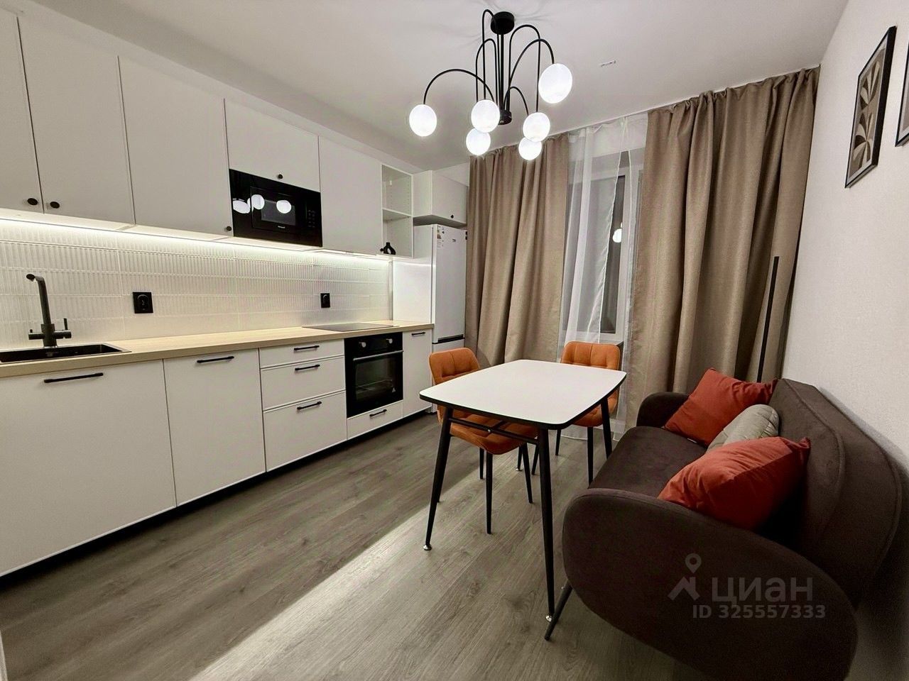 Стильная однокомнатная квартира с дизайнерским ремонтом под ключ Идеальное решение для комфортного проживания Просторная однокомнатная квартира площадью 38 м² с современным ремонтом и продуманной планировкой. Пространство грамотно зонировано на кухню-гостиную и изолированную спальную зону.