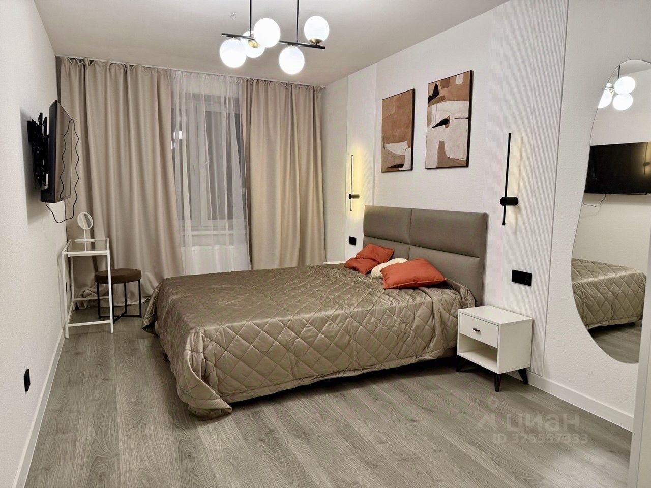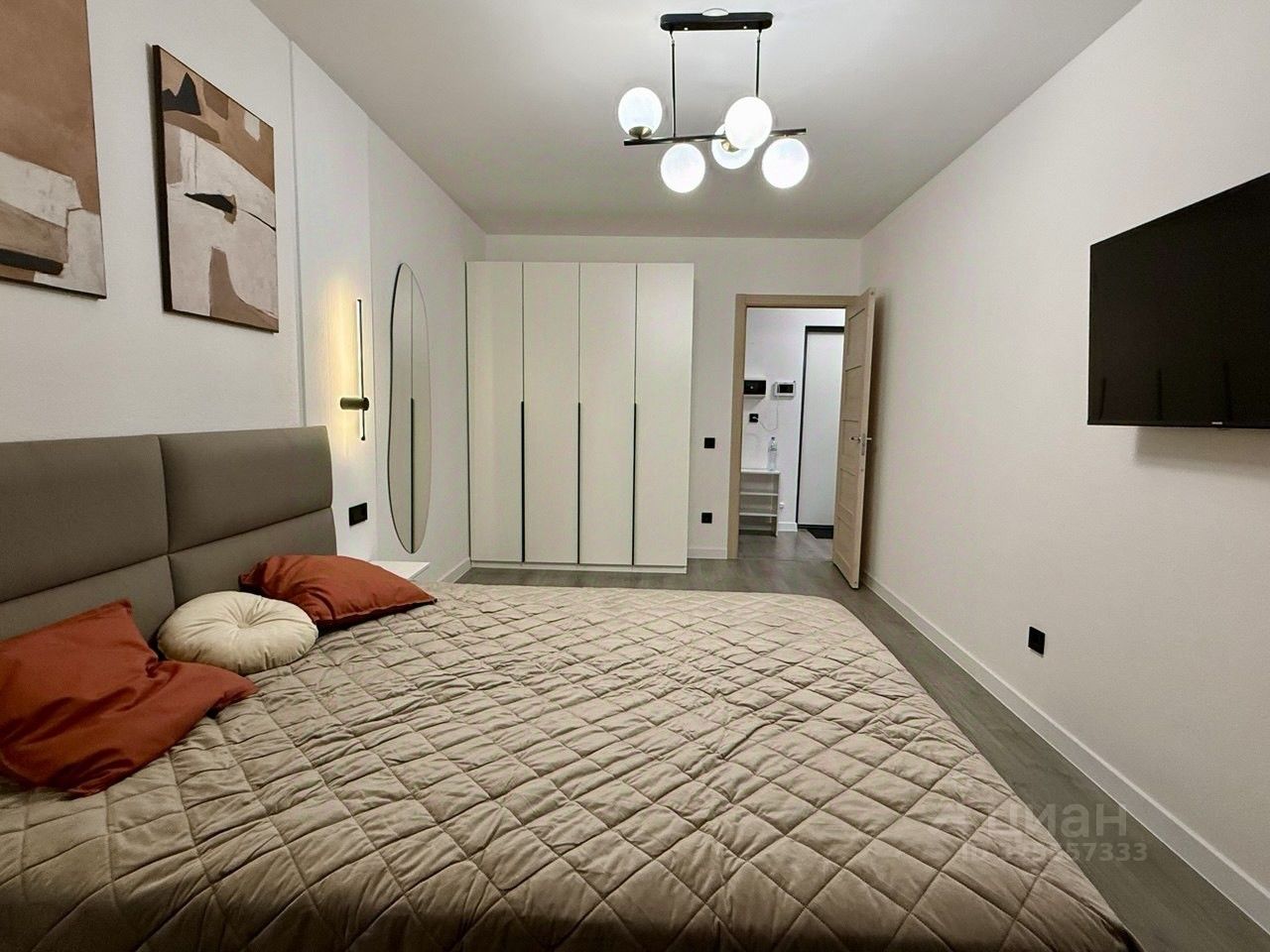 Спальная зона: удобная кровать с ортопедическим матрасом, вместительный шкаф-купе