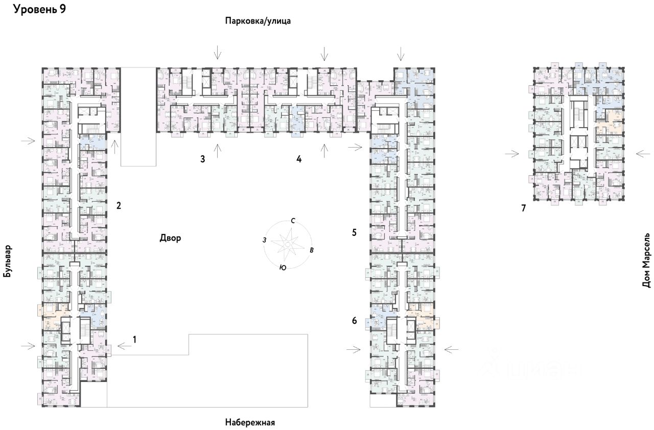 Разнообразие планировок: от классических до квартир с мастер-спальней и террасами.