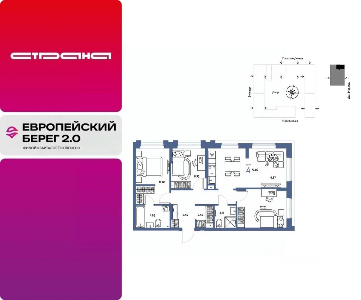 Продается 4комнатная квартира на 17 этаже от застройщика Страна Девелопмент. Площадь квартиры 73 кв. м. Стоимость указана без учета акций.