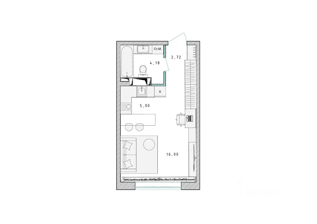 Продаётся студия в сданном доме (Корпус 2), срок сдачи: 4-кв. 2023, общей площадью 27.90 кв.м., на 13 этаже.