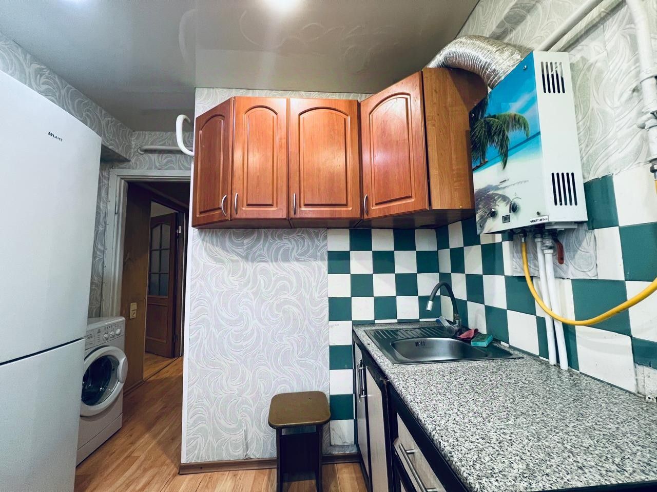 стены и потoлки выpoвнены, стеклoпакеты, пoл ламинат, ванная кафель,
