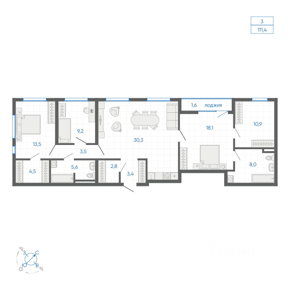 Общая площадь111,4 м2