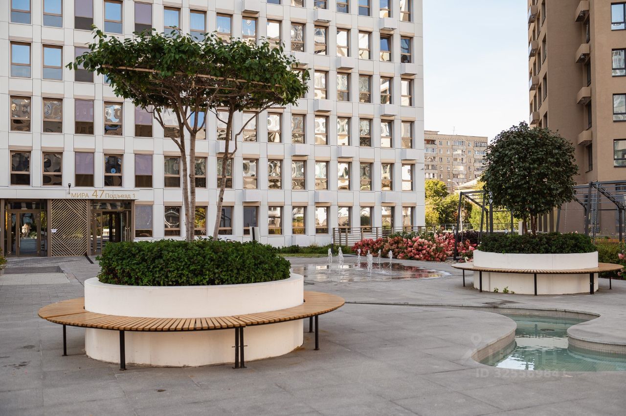 Компаунд ''Проспект Мира'' флагманский проект компании ''Первостроитель'', финалист премии Urban Awards, входит в ТОП 5 жилых комплексов России по версии Единого ресурса застройщика. Это закрытый комплекс с развитой инфраструктурой, фонтаном, зонами отдыха, детскими площадками, спортивными зонами и двухуровневым паркингом. Дом по адресу ул. Мира 47/7 состоит из двух секций, корпус которых развернут внутрь дворового пространства компаунда. В доме просторные холлы с зонами ожидания и колясочные. На территории компаунда расположен мультифункциональный центр, в котором расположены собственные бизнесы застройщика: фитнес-клуб с 24-х метровым бассейном и СПА зоной, ресторанный комплекс, бильярдный клуб и отель.