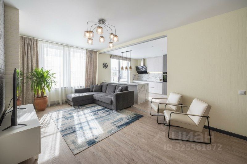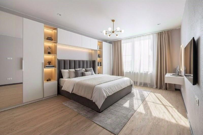 Интерьер выполнен в спокойных, свежих тонах, создающих ощущение уюта и простора. Из окон открываются виды на ухоженные дворы и городские улицы, а продуманная планировка дарит комфорт для жизни и отдыха.