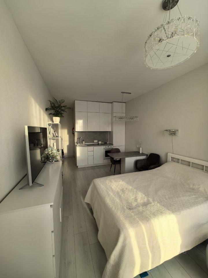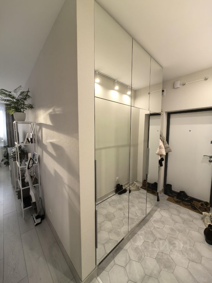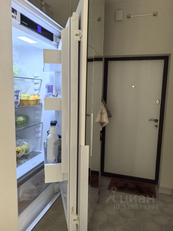 С красивым качественным ремонтом, который сделан для себя с душой. Очень уютная . Хорошая качественная мебель эггер, прихожая, очень функциональная с большим количеством мест для хранения. Холодильник встраиваемый либхер, который ещё на гарантии.