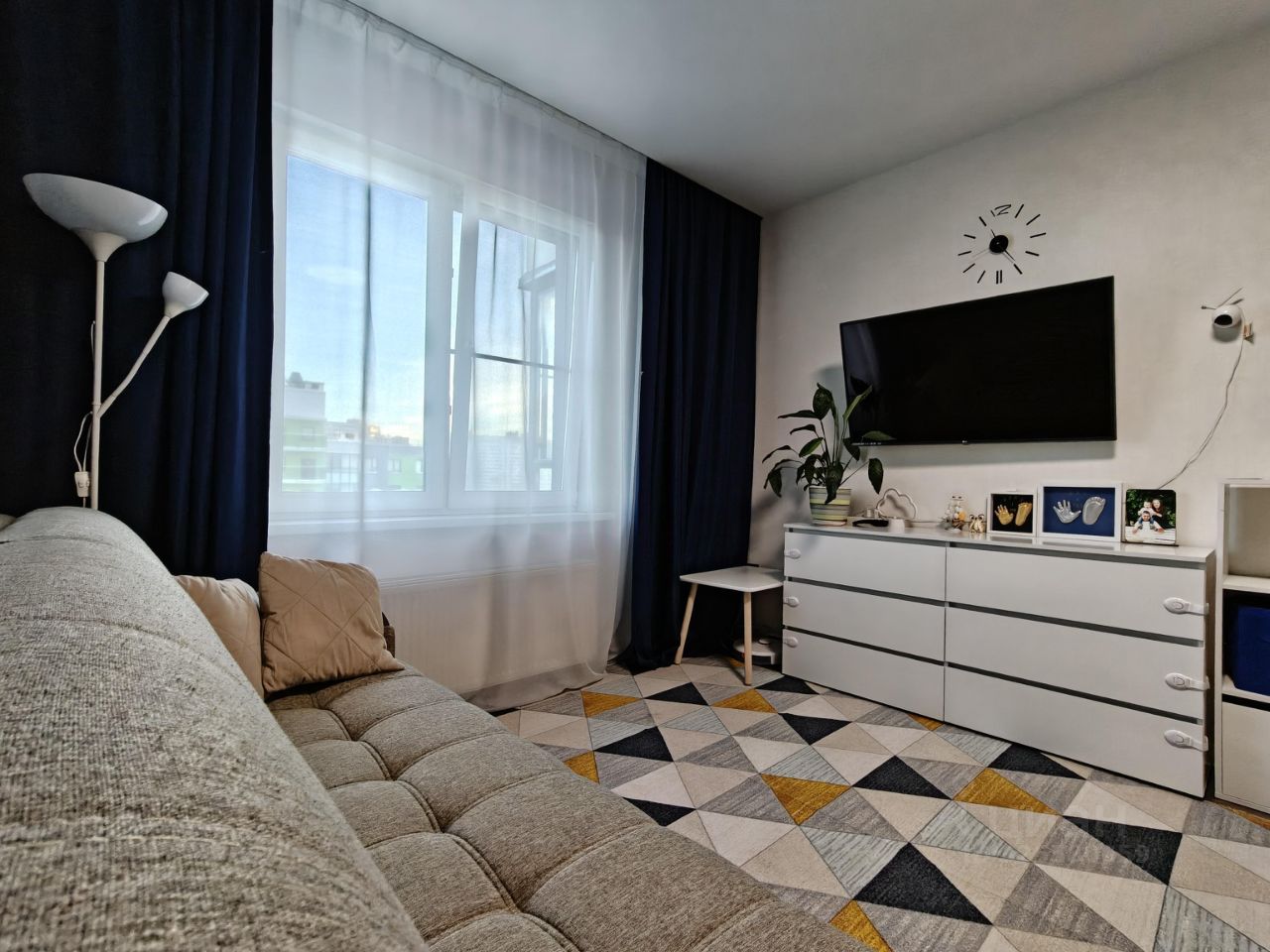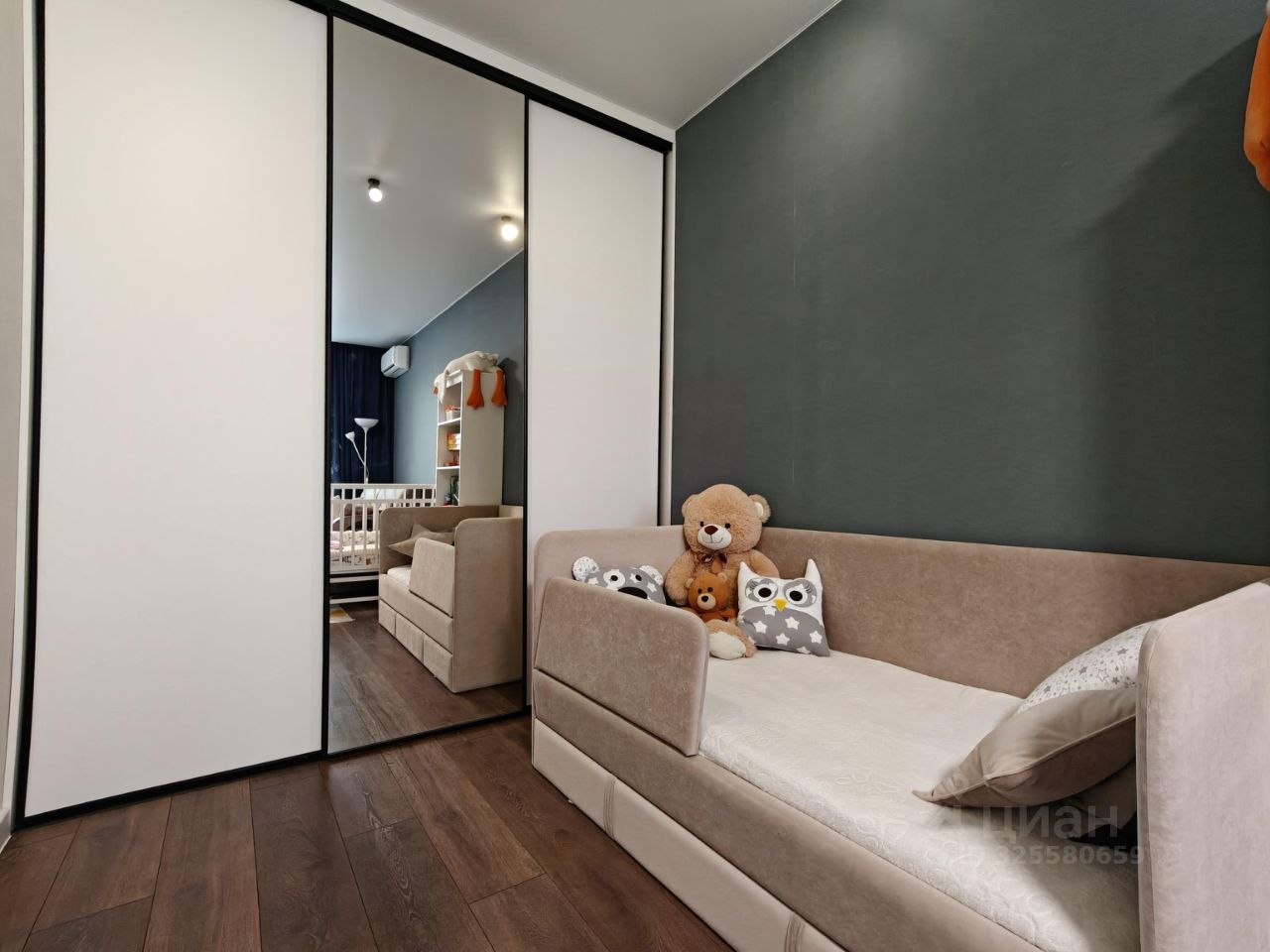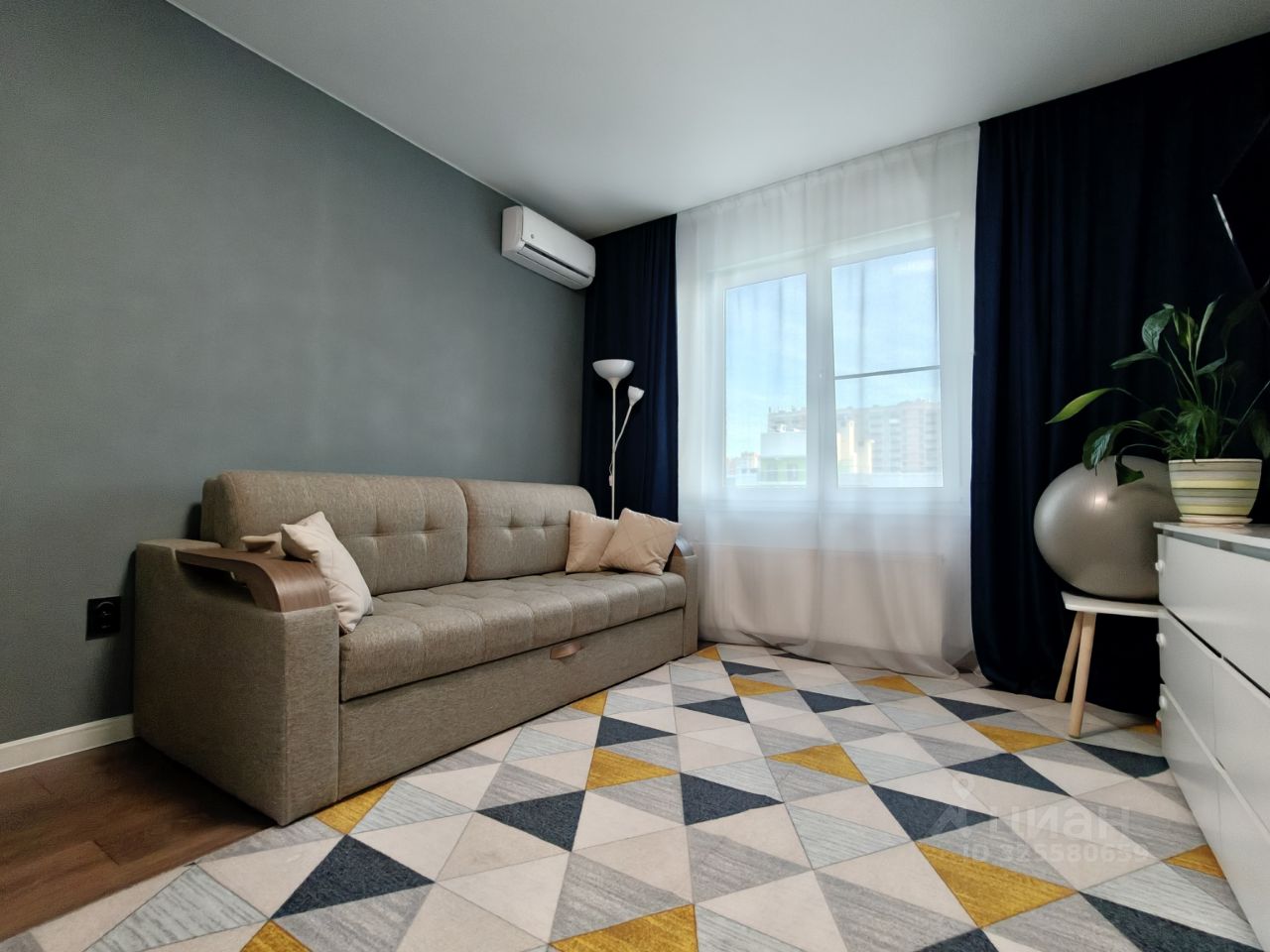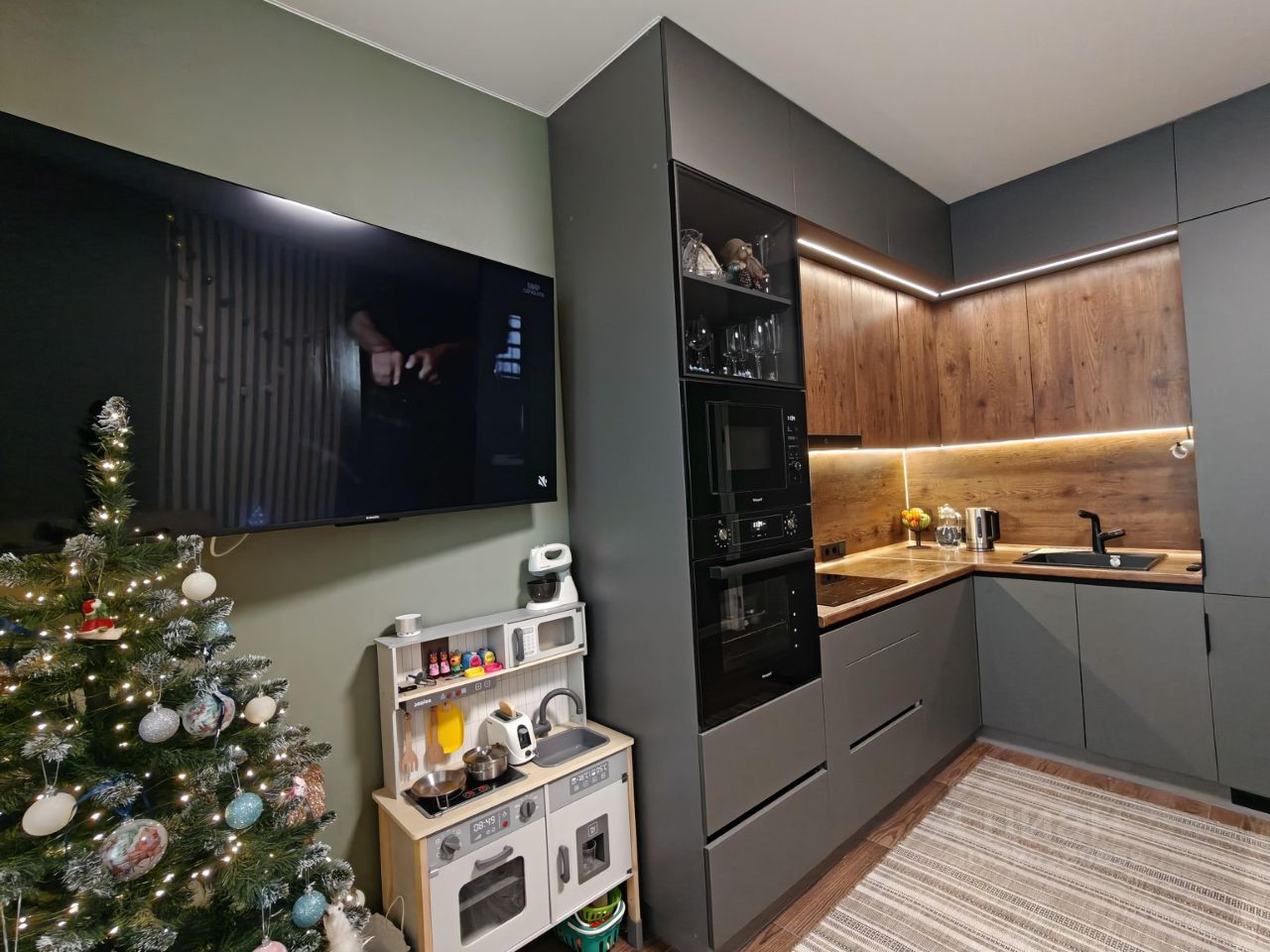 Новым жильцам остается: кухный гарнитур с варочной панелью и вытяжкой, встpoeнный шкaф-купе в комнате, встроенный шкаф и тумба с раковиной в ванной, кондиционер.