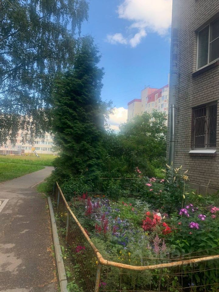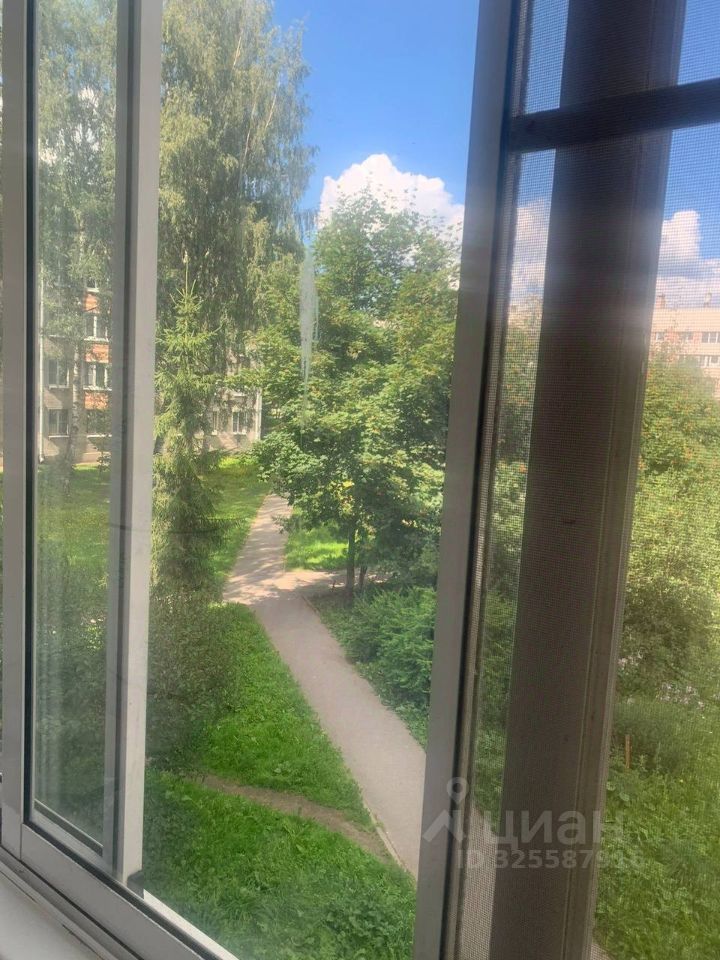 Из окон открывается вид на зеленый двор, где расположена детская площадка.