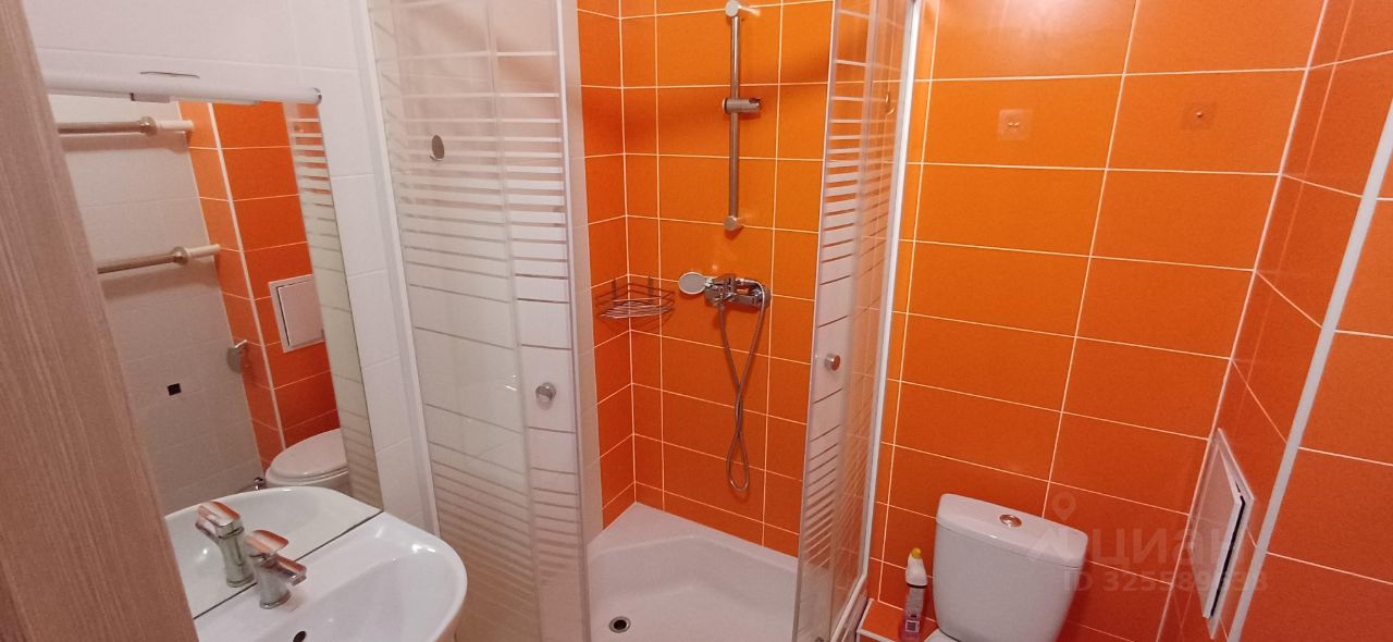 В студии есть необходимая мебель как на кухне, так и в комнате. Из техники имеется холодильник, микроволновая печь, плита, но ОТСУТСТВУЕТ стиральная машина. Ванная комната оборудована душевой кабиной и совмещенным санузлом.