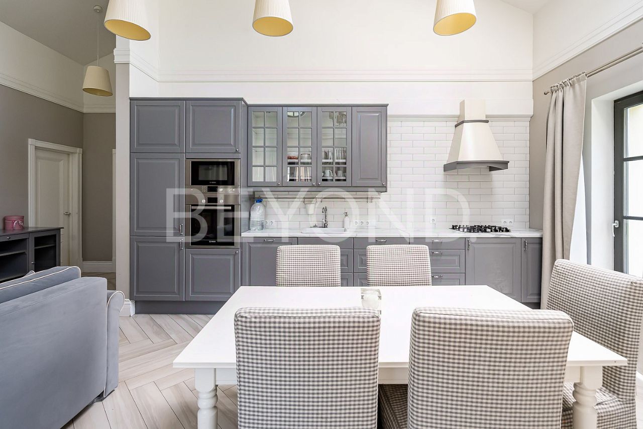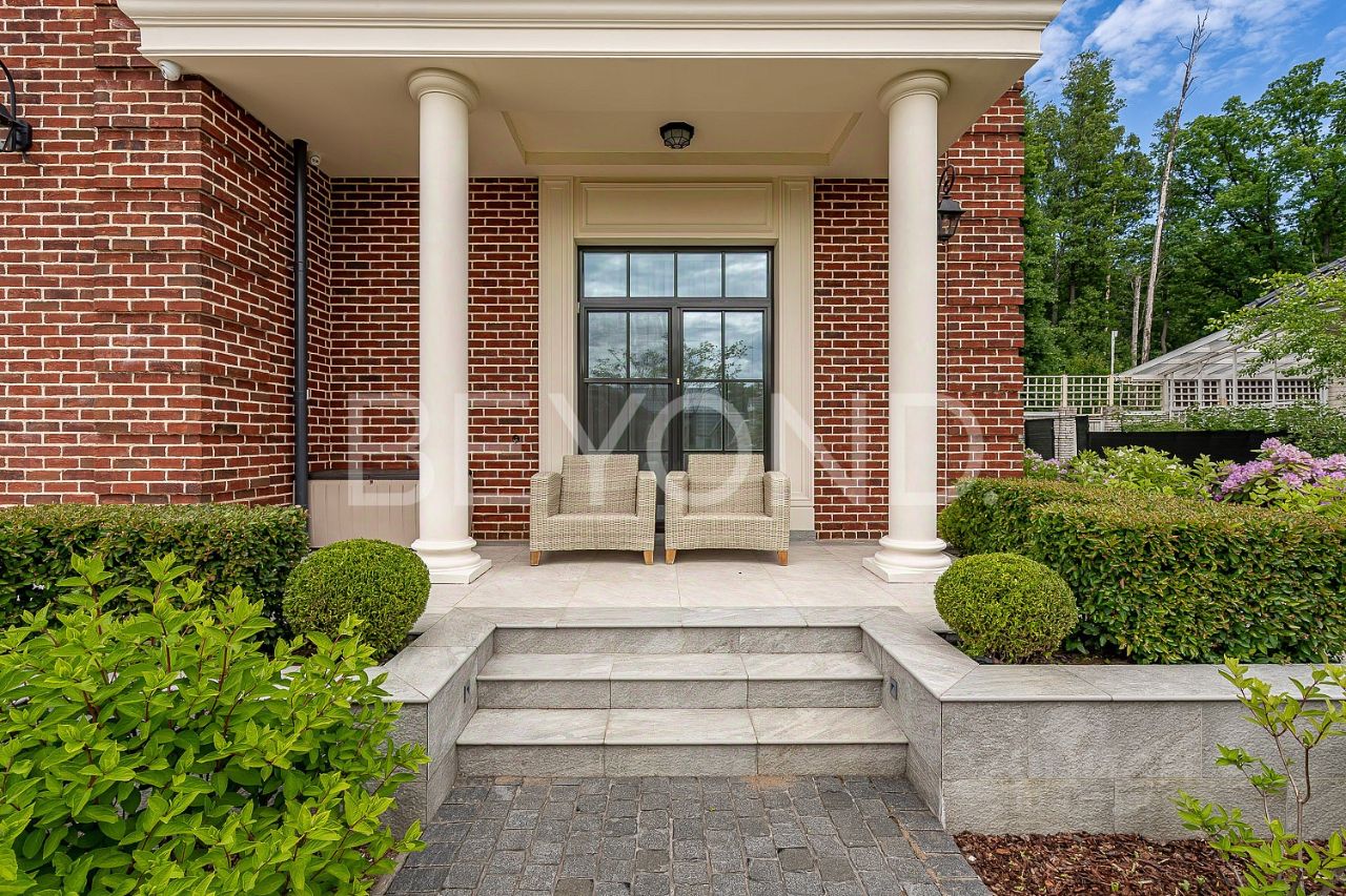 Предлагается к покупке загородный дом общей площадью 380 кв. м в традиционной американской классике. Этот дом проектировался и строился с нуля, поэтому и внешний облик, и интерьерное наполнение в полной мере соответствуют друг другу. Попадая во внутренний двор, словно оказываешься в старом добром голливудском фильме: фасады из красного кирпича, панорамные окна, архитектурное решение стен, крыши, крыльца — все это черты презентабельности и элегантности. Ощущение усиливается, когда входишь в дом. На первом этаже просторные светлые холлы, парадная гостиная с камином и светлой мягкой мебелью, торжественная столовая с большим обеденным столом, роскошная мастер-спальня с большой гардеробной и ванной, кабинет — все создано для размеренной и счастливой жизни.